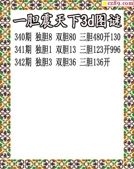 一胆震天下独胆2025342期3d图谜(原创)-【3d试机号查询_今日3d试机号查询_福彩3d试机号今天_3d试机号口诀_3d试机号每日快报】